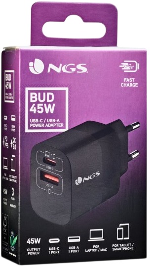 Jetzt kaufen!Carregador Universal GaN 65W (2x USB-C/USB-A) - NGS