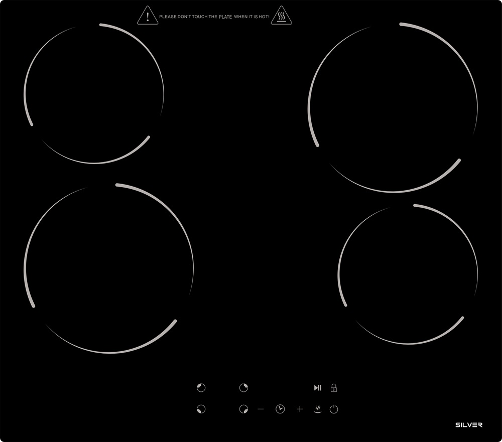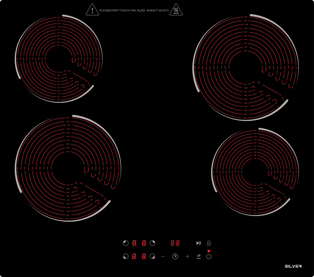 Placa Vitrocerâmica 4 Zonas 6000W (Preto) - SILVER