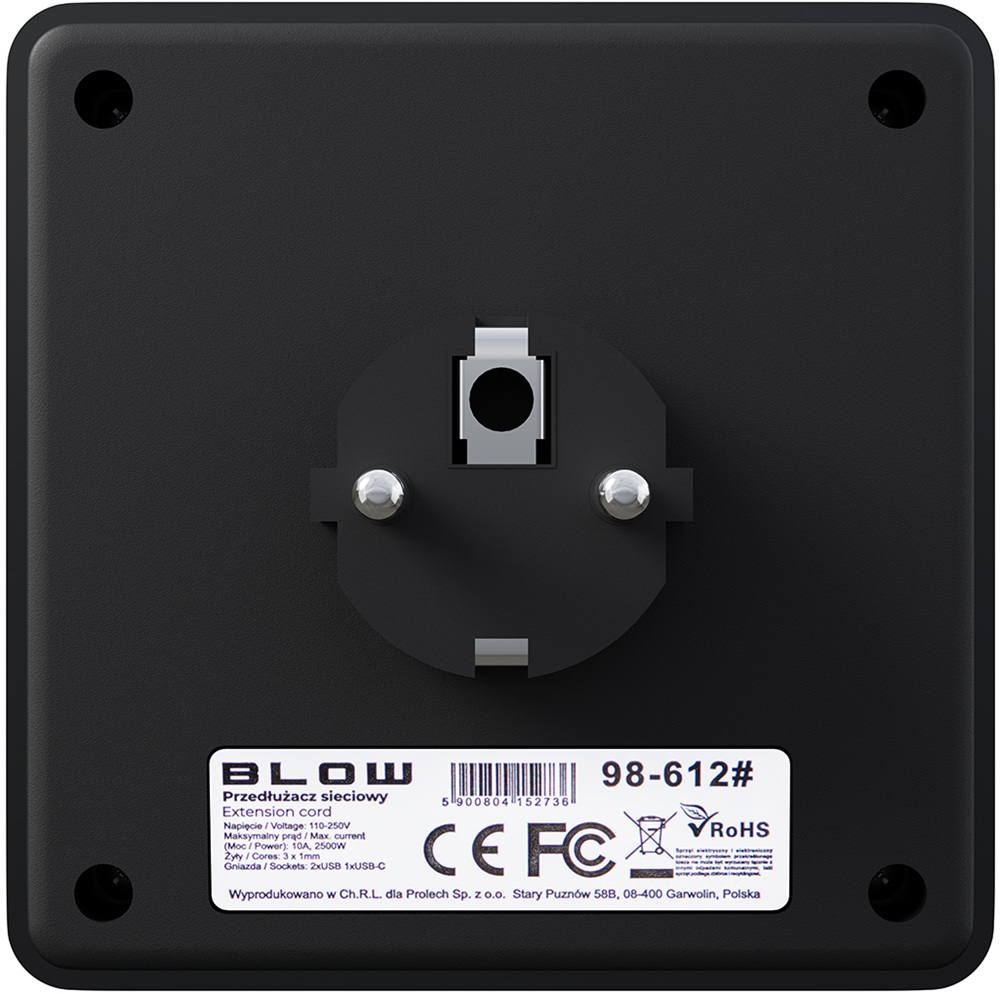 Tomada Dupla c/ 2 Portas USB + Porta USB-C + Interruptor (Preto) - BLOW