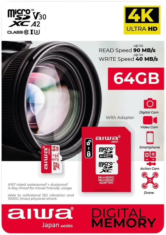 64GB MicroSDXC Class 10 Memory Card + Adapter - AIWA