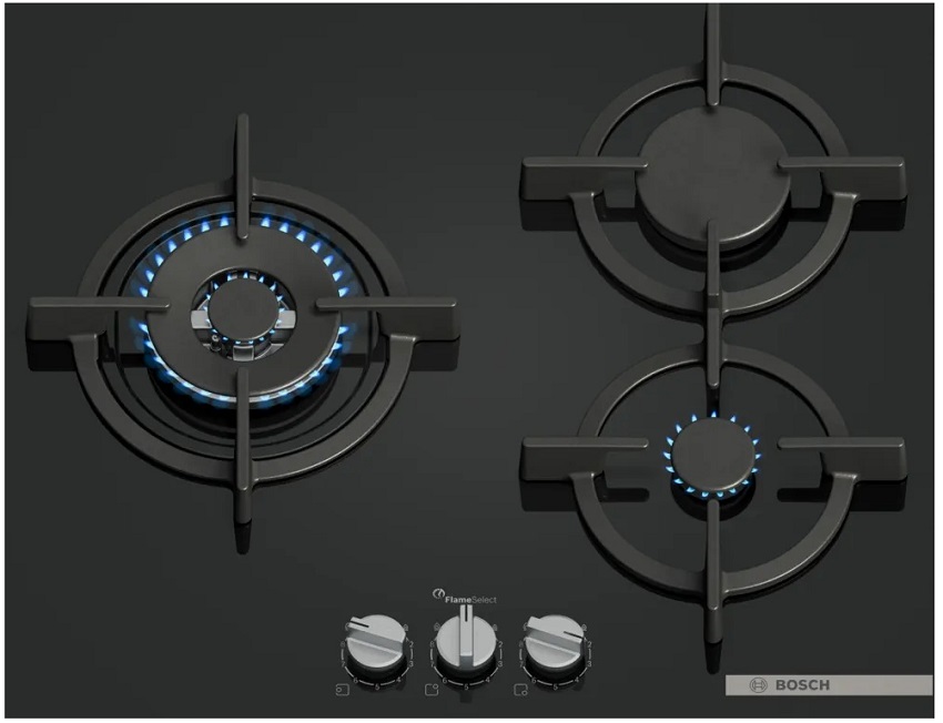 3-Burner Gas Hob Series 6 PPC6A6I10 (Black) - BOSCH