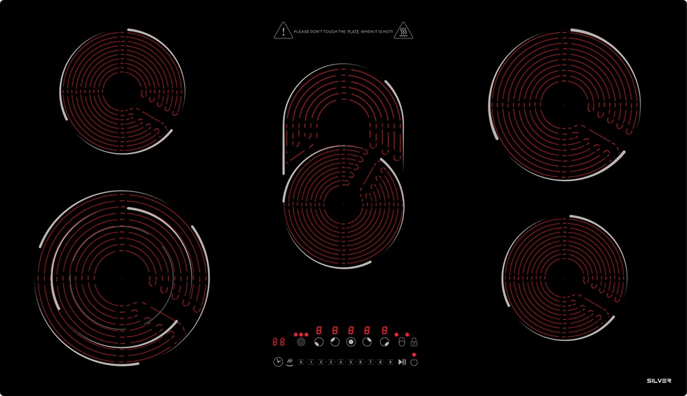 Placa Vitrocerámica 5 Zonas 8700W (Negra) - SILVER