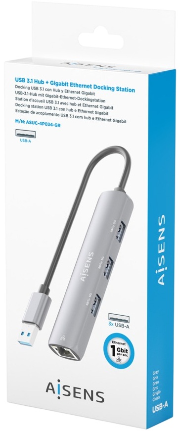 Hub USB-A 3.0 "4-EM-1" (3x USB-A/RJ45) - AISENS