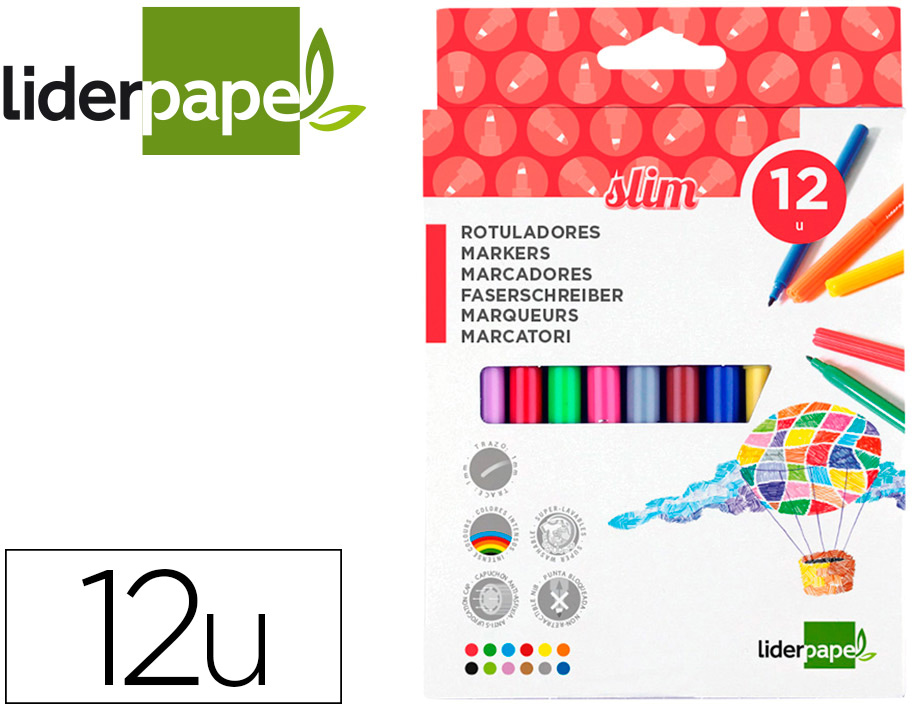 Marcador Feltro Slim Caixa 12 Cores