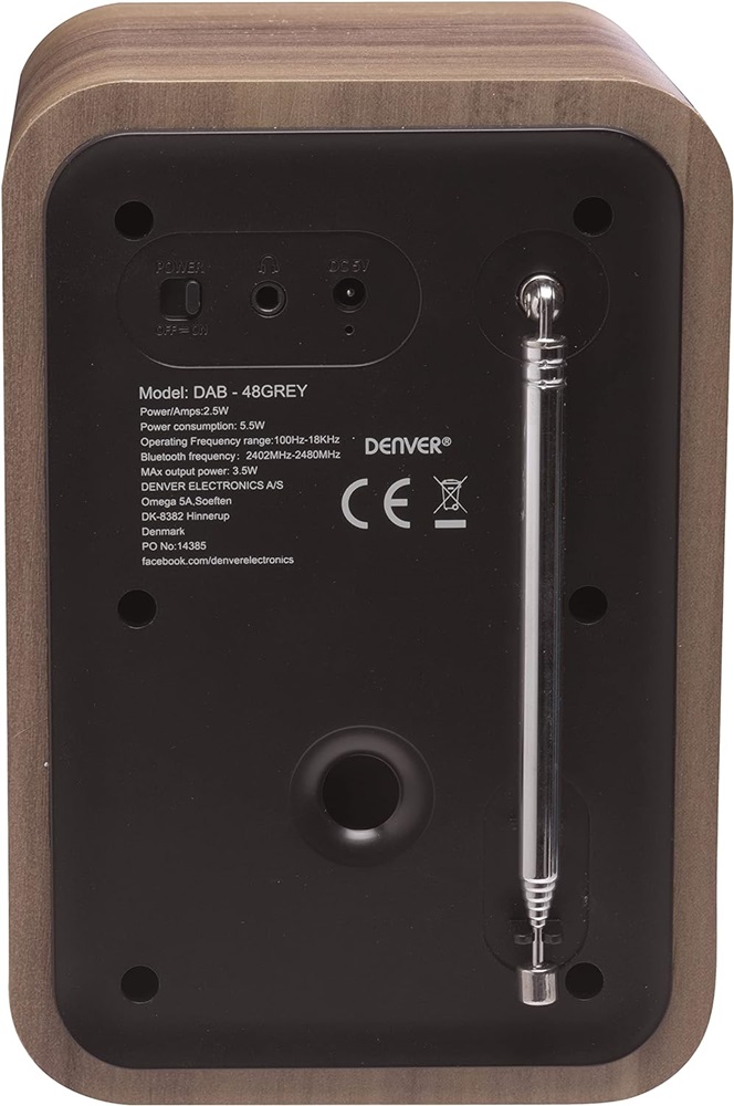 Rádio Digital c/ Bluetooth DAB-48GREY (Cinzento/Madeira) - DENVER
