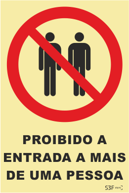 Sinal de Proibição de Entrada a Mais de Uma Pessoa - Fotoluminescente (150mmx200mm)