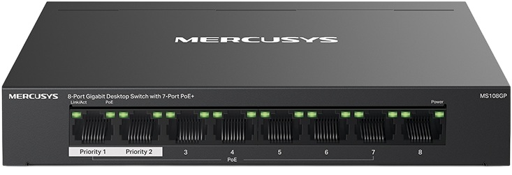 Switch de Rede MS108GP 8 Portas Gigabit Managed c/ 7 Portas PoE+ - MERCUSSYS