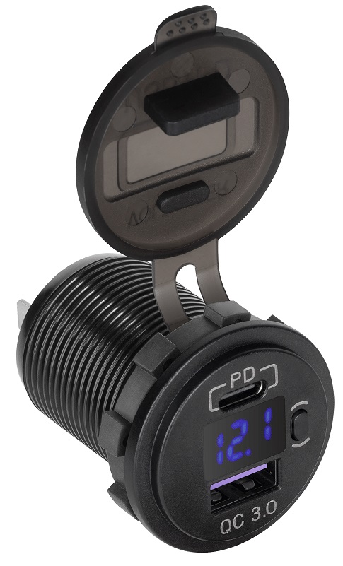 Tomada de Isqueiro de Painel c/ USB QC 3.0 + USB-C PD + Indicador de Tensão 48W - PEIYING