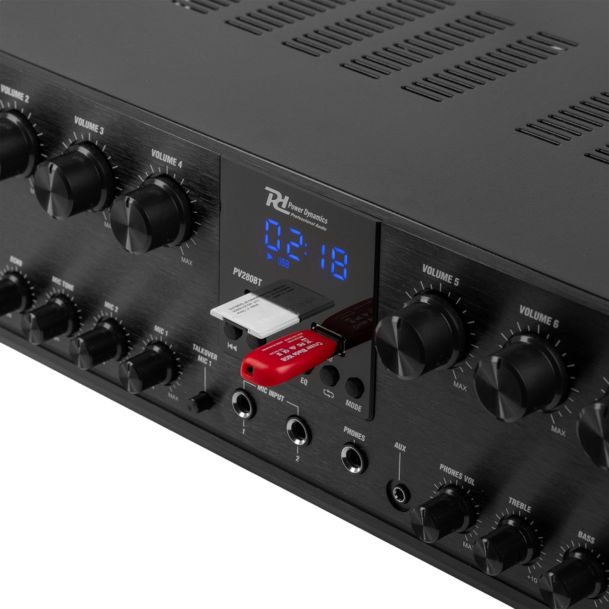 8-Channel Bluetooth MP3/USB/SD Amplifier 16x 50W (PV280BT) - Power Dynamics