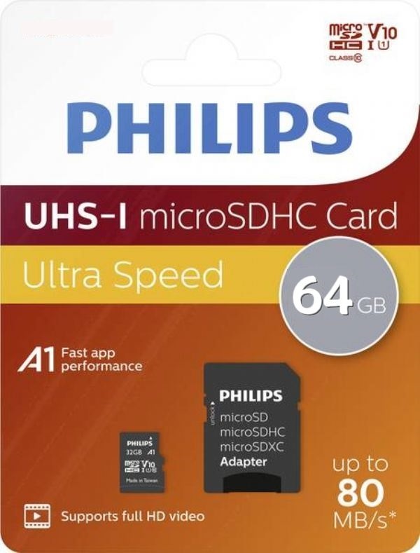 Memory Card 64GB MicroSDHC Class 10 + Adapter - PHILIPS