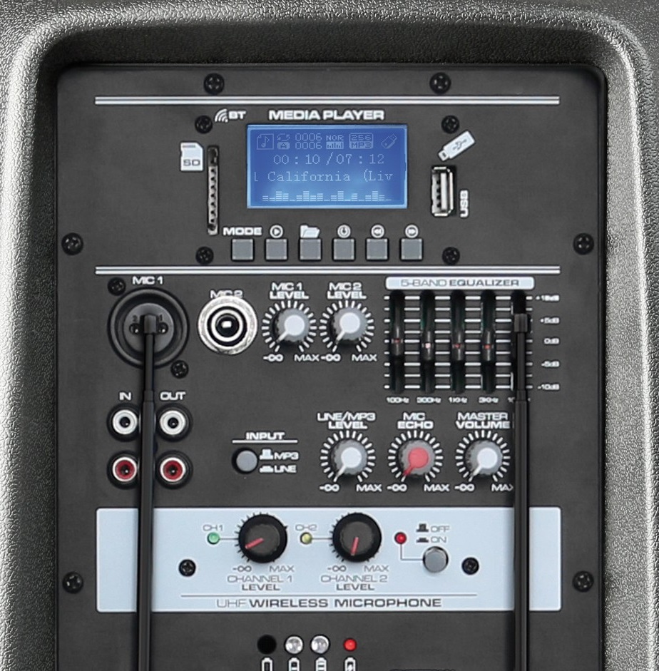 Amp column Portable 12" 600W MP3/USB/SD/BLUETOOTH w/ 3x UHF Microphones (AP1200PA) - VONYX