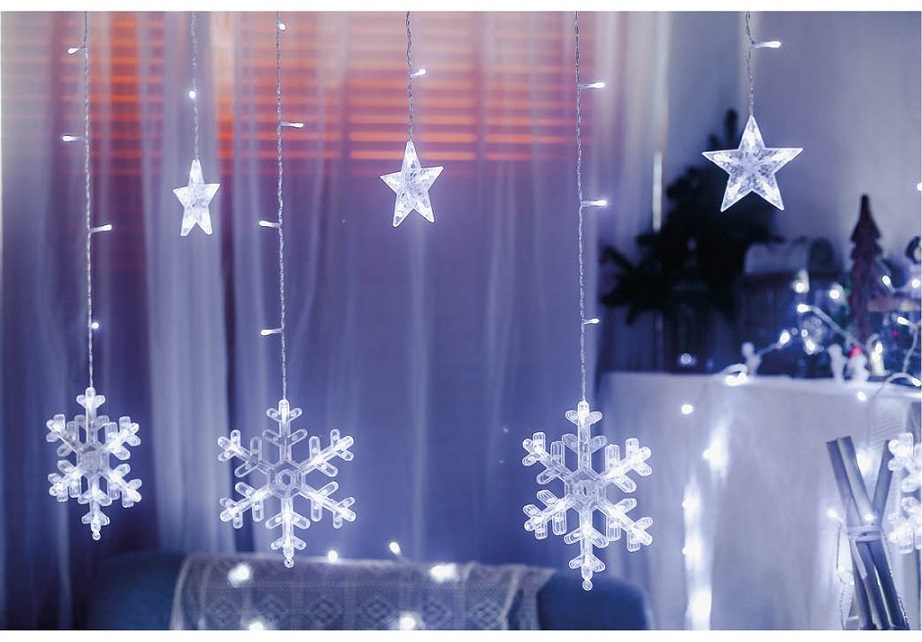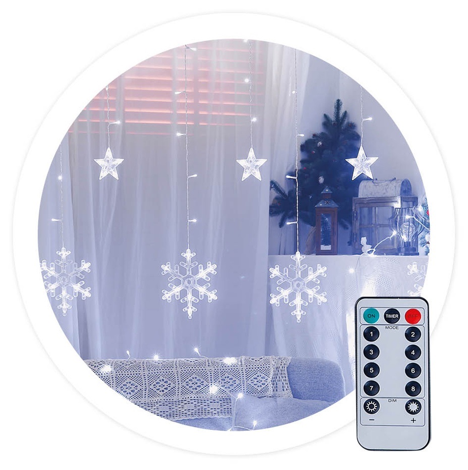 Curtain 138 LEDs Christmas Cold White 6000K USB w/ Stars and Snowflakes (3.5 mts) - GSC