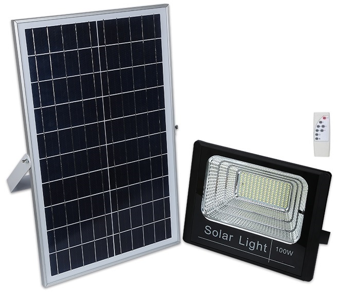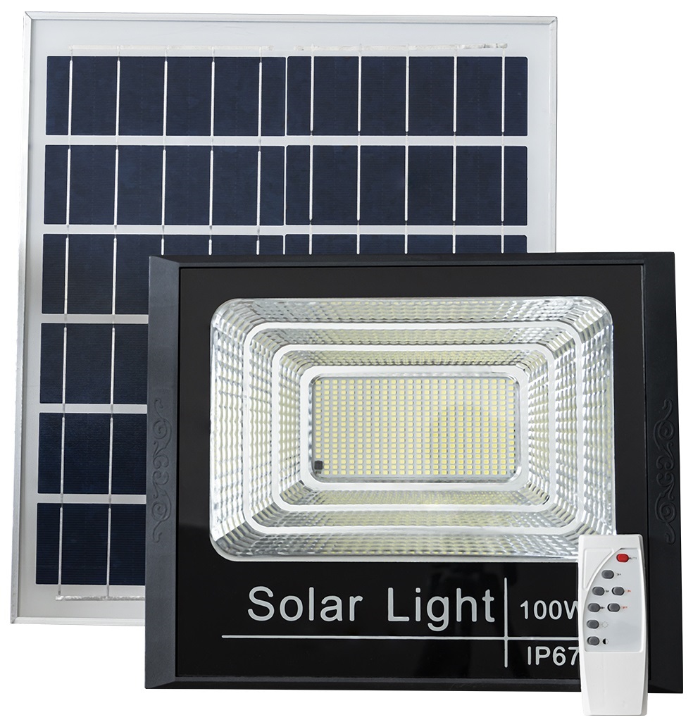 LED Projector Kit 100W White F. 6000K w/ Sensor + Solar Panel (IP65)