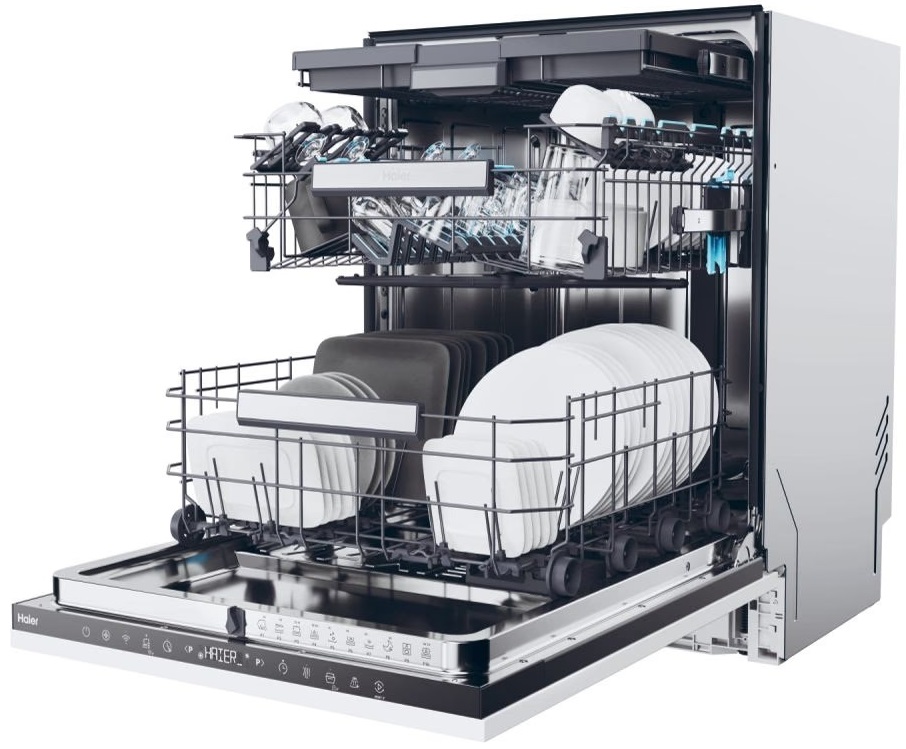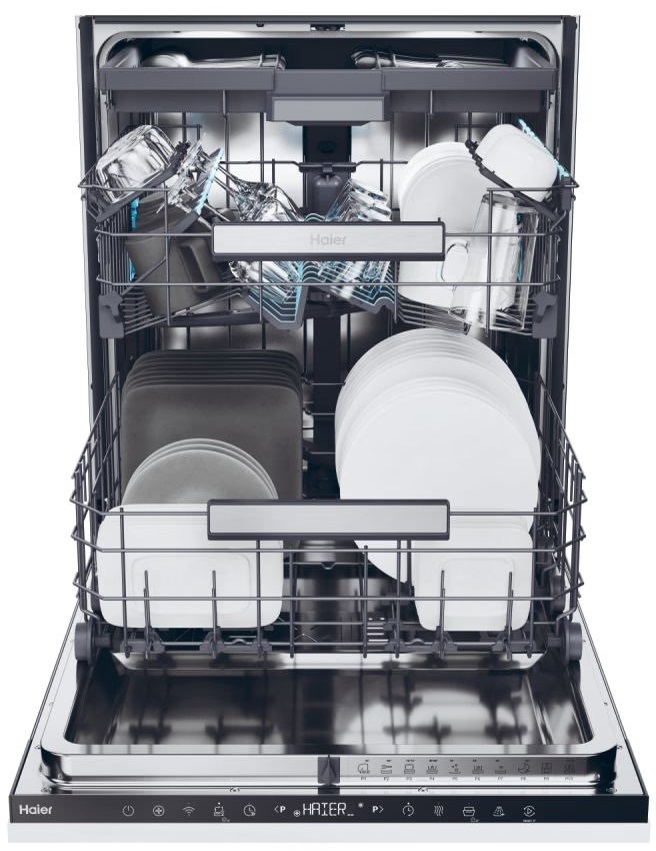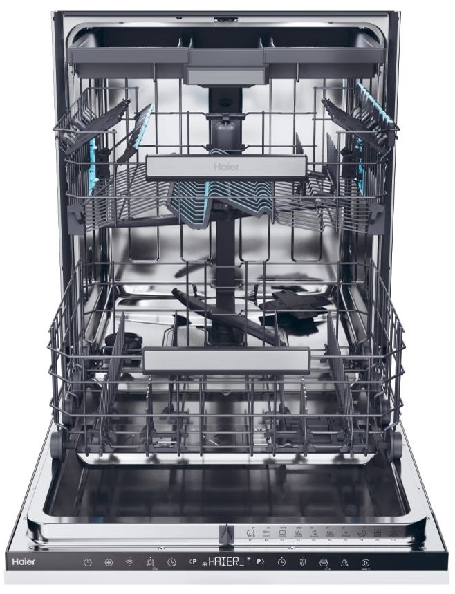 The Haier dishwasher is equipped with a new brushless Inverter Motor that delivers powerful performance. This innovative solution developed by Haier not only reduces vibrations and noise, but also saves energy, as confirmed by its class B energy rating.