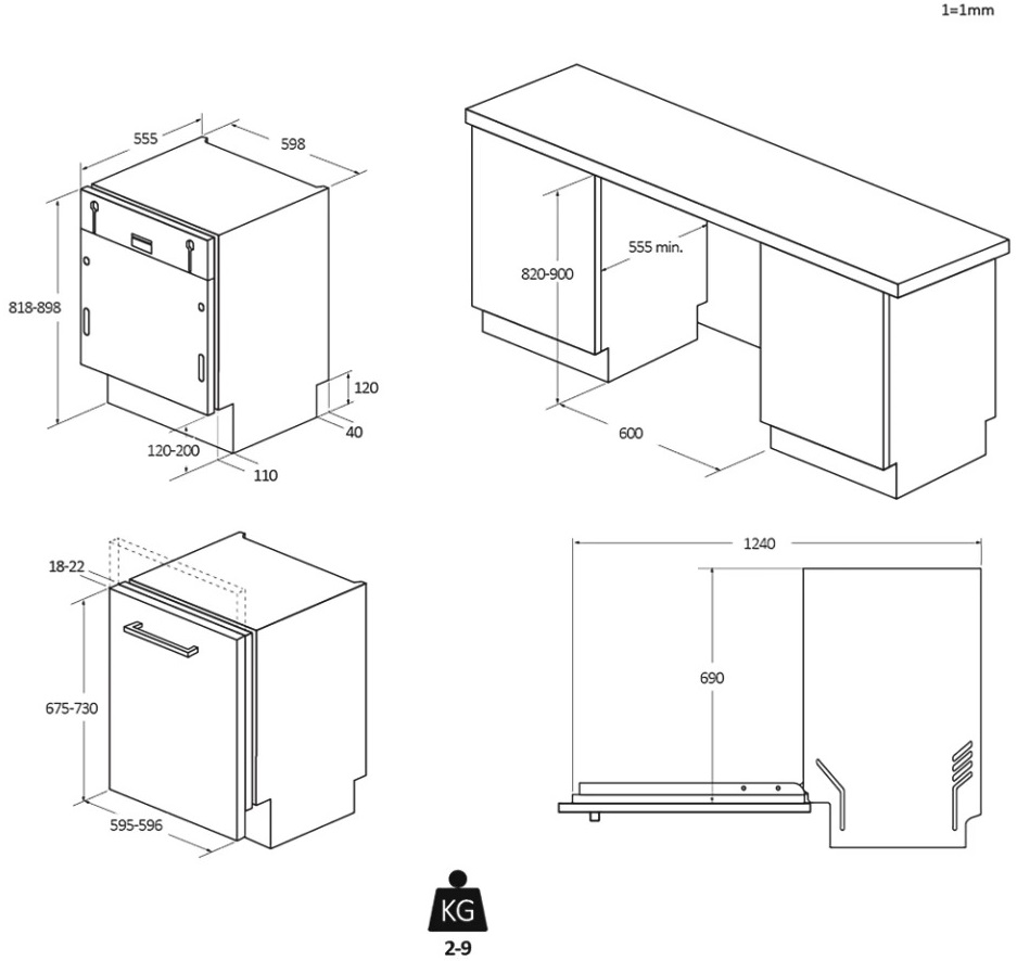 Depth: 555 mm