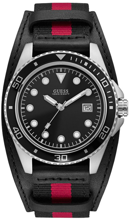 W1051G1 44mm Analog Clock (Silver / Black) - Guess