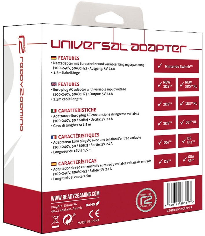 Alimentador Universal p/ G.B.A./DS + Nintendo Switch (Preto) - READY2GAMING