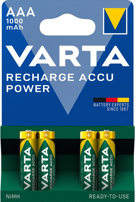 Blister 4 Pilhas Recarregáveis AAA 1,2V 1000mAh - VARTA