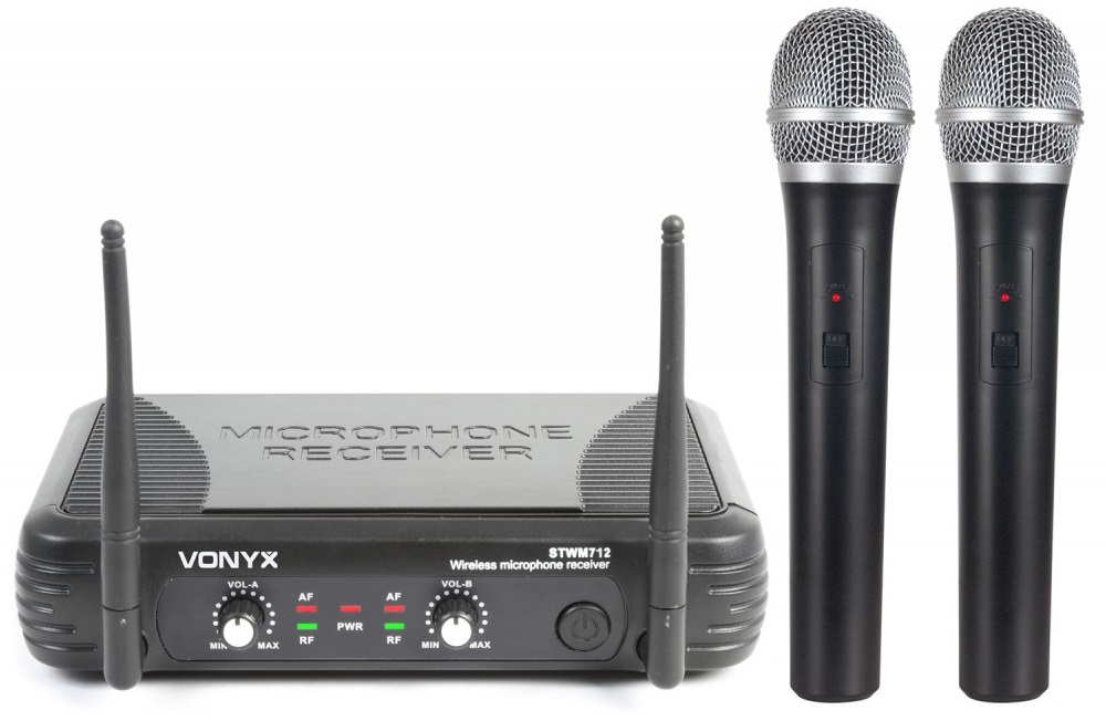 Central 2 Microfones Mão VHF 2 Canais s/ Fios (STWM712) - VONYX